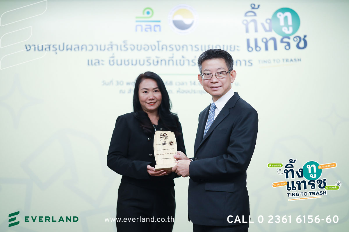 ผู้บริหารของบริษัทฯ เข้าร่วมพิธีรับมอบโล่ จาก ดร. กอบศักดิ์ ภูตระกูล อุปนายกสมาคมบริษัทจดทะเบียนไทย เนื่องในโอกาสการจัดงานสรุปผลความสำเร็จของโครงการ “ทิ้งทูแทรช” และชื่นชมบริษัทที่เข้าร่วมโครงการในฐานะ บริษัทฯ ผู้เข้าร่วมโครงการ